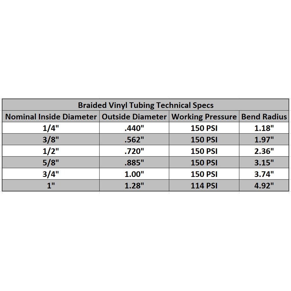 1 4 Vinyl Tubing Pressure Rating