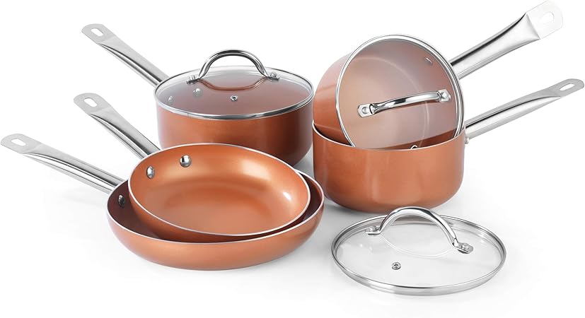 Make sure the pan has a smooth flat base to provide the best contact with the hob ring. At least for the price the pots and pans from this cookware set look really attractive and are a treat to cook with. Ceramic cookware set non stick scratch resistant 100 pfoa free induction aluminum pots and pans set with cooking utensil pack 13 white 4 5 out of 5 stars 264 154 33 154. You can use any pans except copper stainless steel with an exposed copper base and glass on a ceramic hob.